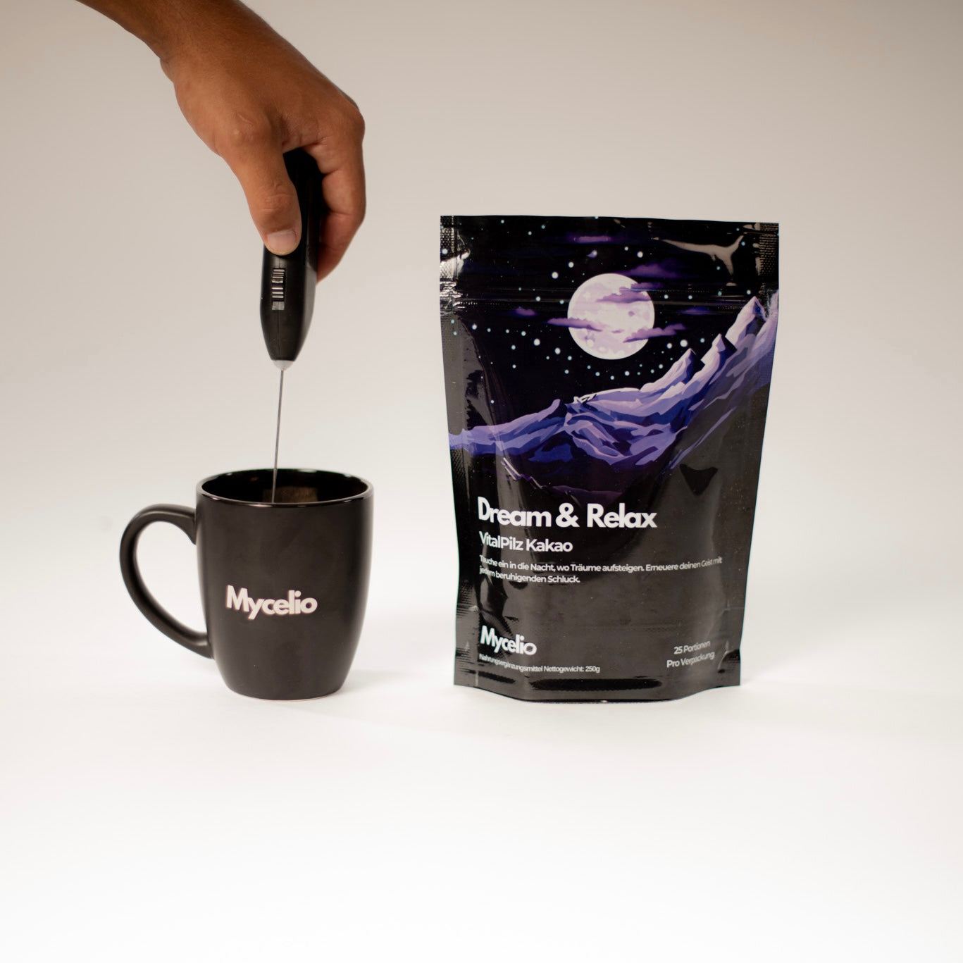 Kaufen Sie den Mycelio Starterkit und erhalten Sie eine Tasse und einen Milchaufschäumer im Wert von CHF 45.80 gratis dazu!
