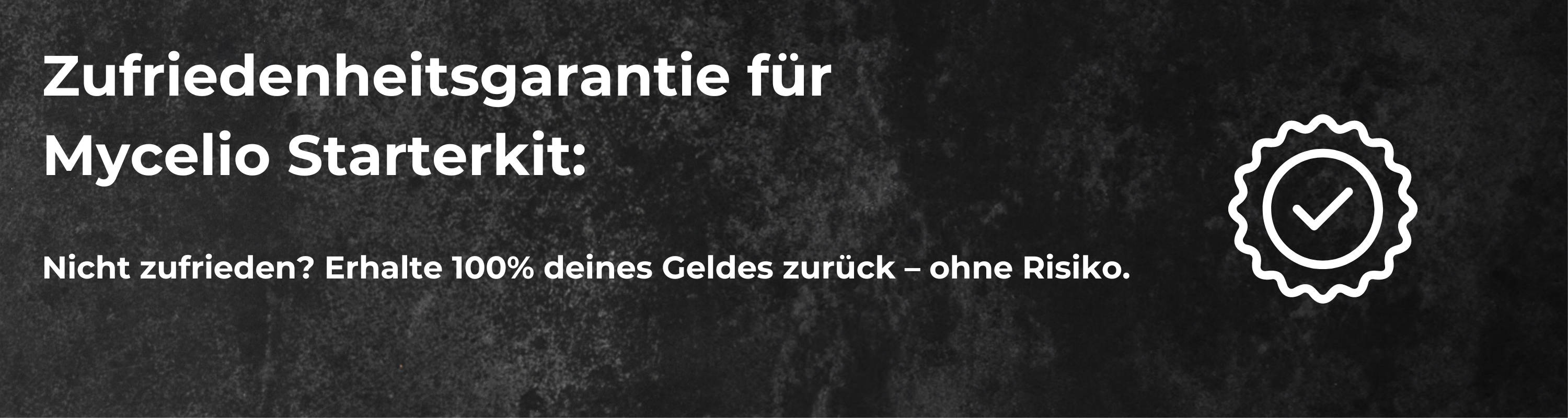 Wir sind überzeugt, dass das Mycelio Starter Kit dir genau die perfekte Balance aus Energie und Entspannung bieten wird. Solltest du dennoch nicht zufrieden sein, bieten wir dir eine 100% Geld-zurück-Garantie. Dein Wohlbefinden und deine Zufriedenheit stehen bei uns an erster Stelle.